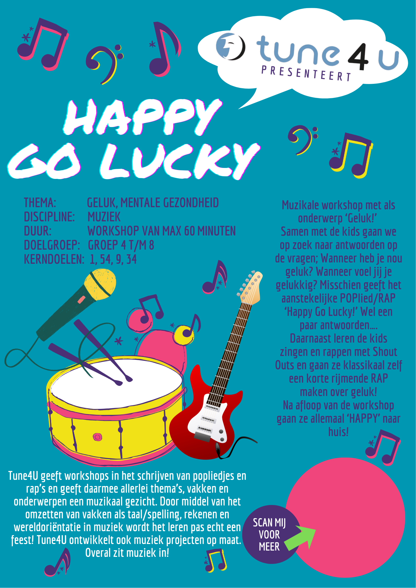 Daarnaast leren de kids zingen en rappen met Shout Outs en gaan ze klassikaal zelf een korte RAP maken over geluk!